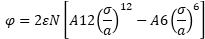 A, B, n, m, σ [Å] und ɛ als ɛ/k [K] mit k = Boltzmann Konstante sind Stoffkonstanten, r ist der Abstand beider Moleküle [Å]. φ ist das Energiepotenzial in den Einheiten von ɛ, d.h. J oder erg. Der Exponent m = 6 lässt sich nach Coulomb herleiten (Moelwyn-Hughes), der Exponent n = 12 ist empirisch. Die Koeffizienten σ [Å] und ɛ als ɛ/k [K] findet man u.a. in Poling, Prausnitz, sie lassen sich aber auch berechnen, wie nachstehend in 4.1 beschrieben ist.